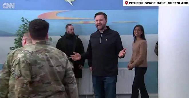 万斯28日强登格陵兰岛,视察美军基地 CNN视频截图