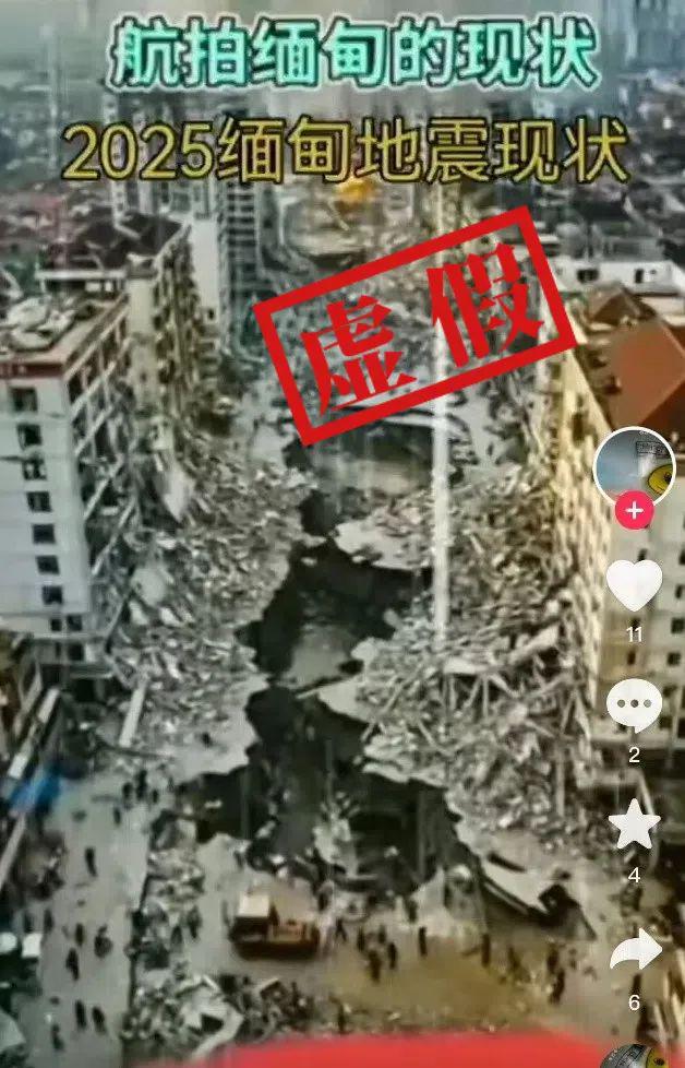 3月28日14时20分,缅甸中部发生7.9级强震,震源深度30公里。随后,社交平台上流传一些据传是“航拍地震现场画面”。