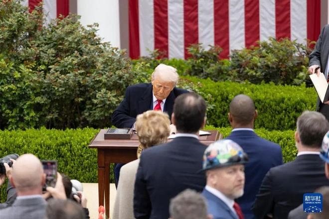 美国总统特朗普于当地时间4月2日在白宫签署关于所谓“对等关税”的行政令 图:新华社