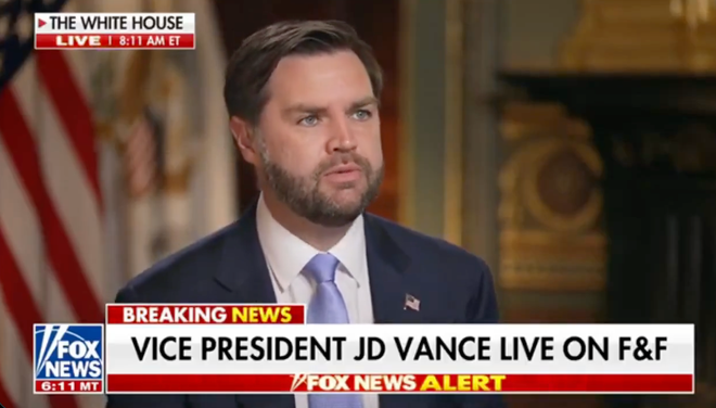 万斯近日接受美国福克斯新闻网采访,在讨论特朗普政府对华贸易政策时其用词引发不满。图源:美国新闻网站BuzzFeed