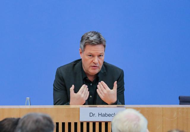 2月24日,在德国柏林,德国副总理兼经济部长罗伯特·哈贝克出席新闻发布会 图/新华社记者张帆摄