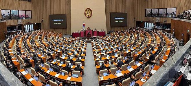 央视消息,当地时间昨天(12月14日)16时,韩国国会进行了全体会议,就在野党阵营第二次提出的尹锡悦总统弹劾案进行表决。