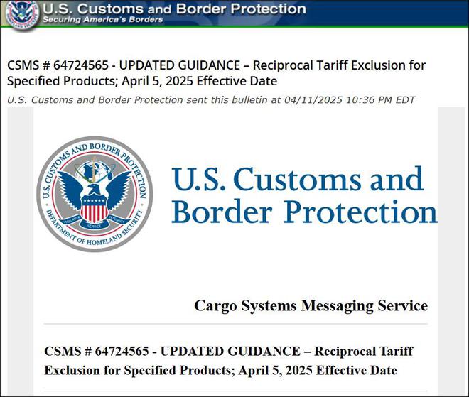 据参考消息转引媒体报道,美国海关与边境保护局(CBP)11日悄然发布了更新税则,豁免了包含自动数据处理器、电脑、通信设备、显示器与模组、半导体相关等类别商品的进口税率,不受“对等关税”影响。