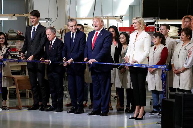 时间回到2019年10月,在特朗普第一个任期,为了规避关税问题,法国时尚巨头路威酩轩(LVMH)集团位于得州约翰逊县的工厂正式投入生产。彼时,特朗普还特别到场,与LVMH集团董事长伯纳德·阿尔诺共同剪彩。
