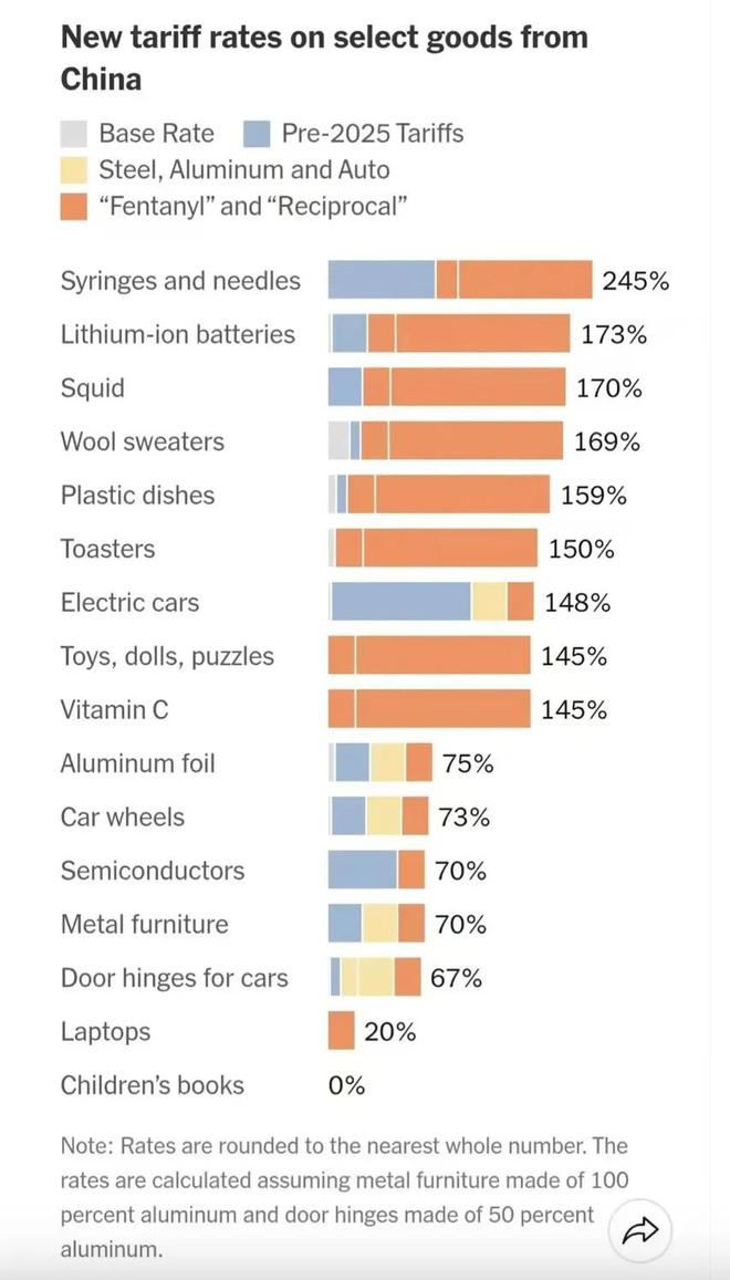 确实很容易混淆。但仔细一看,这不过是美国人玩的小把戏,只是部分商品,面临最高达245%的关税。其他的没有变。