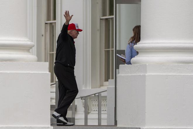 当地时间4月20日,特朗普返回白宫时挥手致意 图据视觉中国
