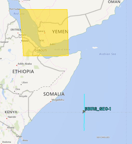 SBIRS-NFOV对也门/红海地域覆盖的模拟,窄视场凝视传感器指向也门首都萨那