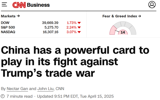 美国有线电视新闻网(CNN)称这是中国手中握有的一张有力王牌(a powerful card to play),是中国对美国拥有绝对优势的一个领域。