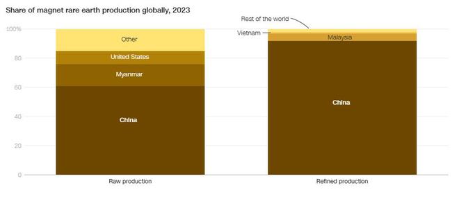 2023年,全球超90%的精炼稀土来自中国 CNN制图