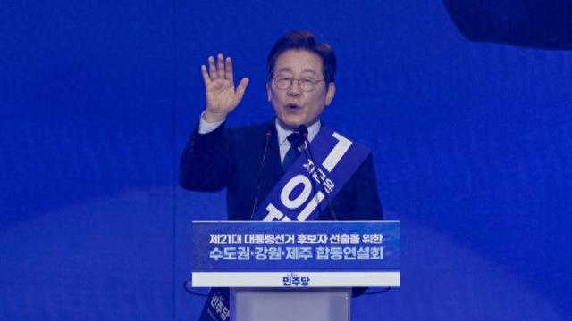 李在明讲话画面据海客新闻,4月27日,李在明当选韩国共同民主党总统候选人,当天他在高阳发表致辞时,被发现身穿防弹衣,身边... 李在明讲话画面